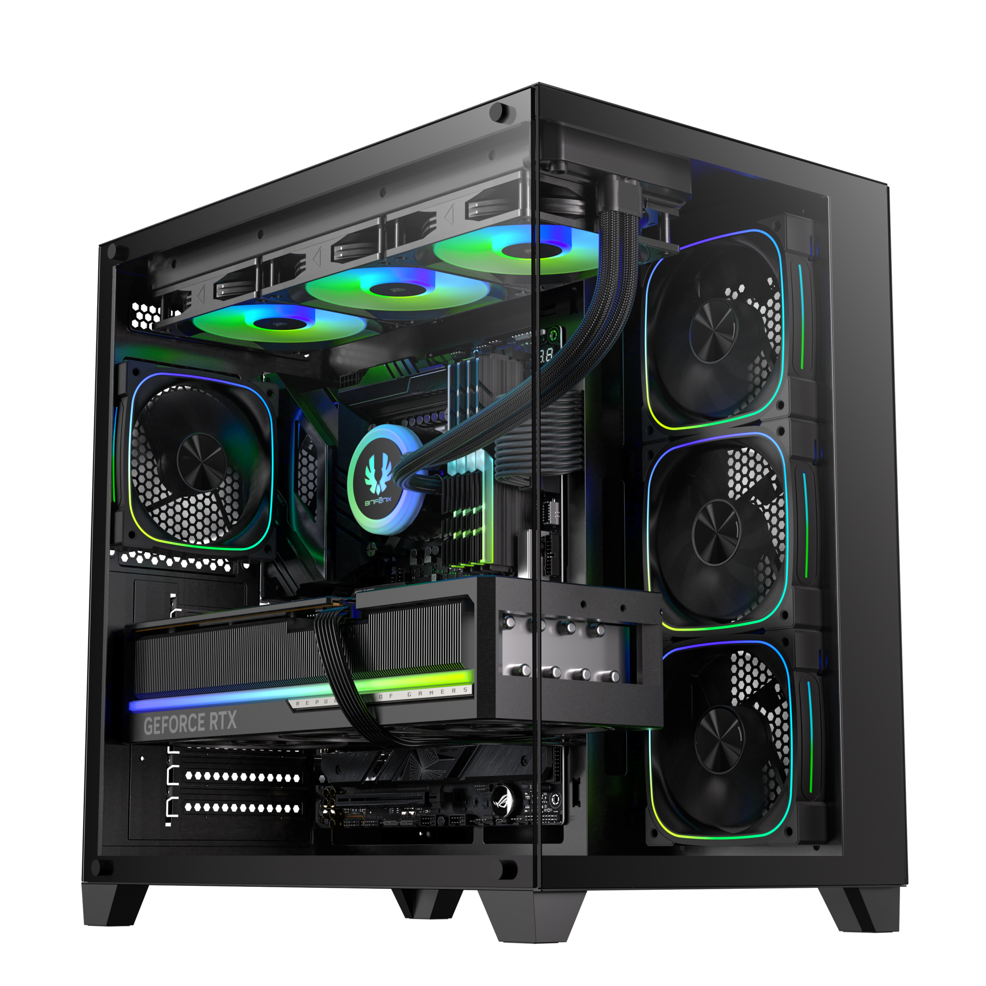 ATX / GPU 407 mm / Disipador 162 mm / 1×3.5 + 1×2.5 / USB 3.0 + 2×USB 2.0